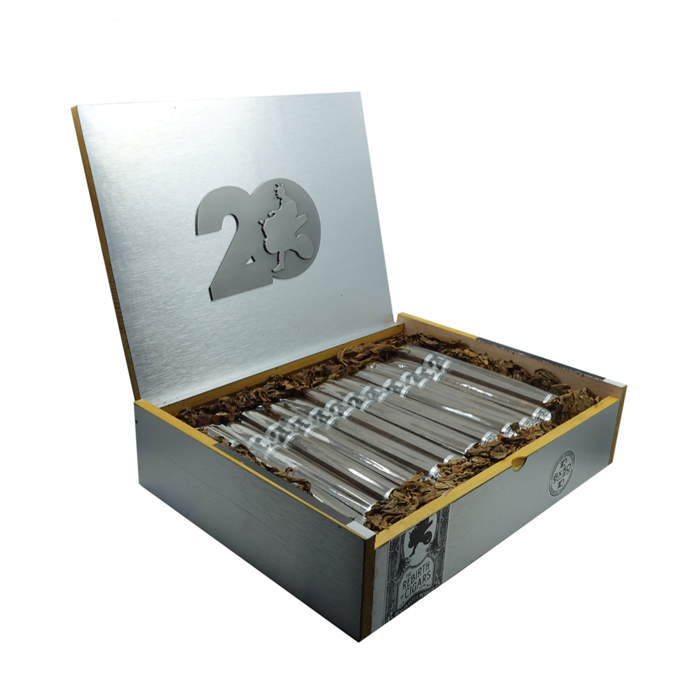 ACID 20 Toro is presented in sleek chrome-style boxes of 25 cigars, each finished with a bold silver-and-black band that marks the milestone. A unique blend of artistry and attitude, this cigar is perfect for those who enjoy a modern, aromatic smoking experience with premium construction and standout flavor.