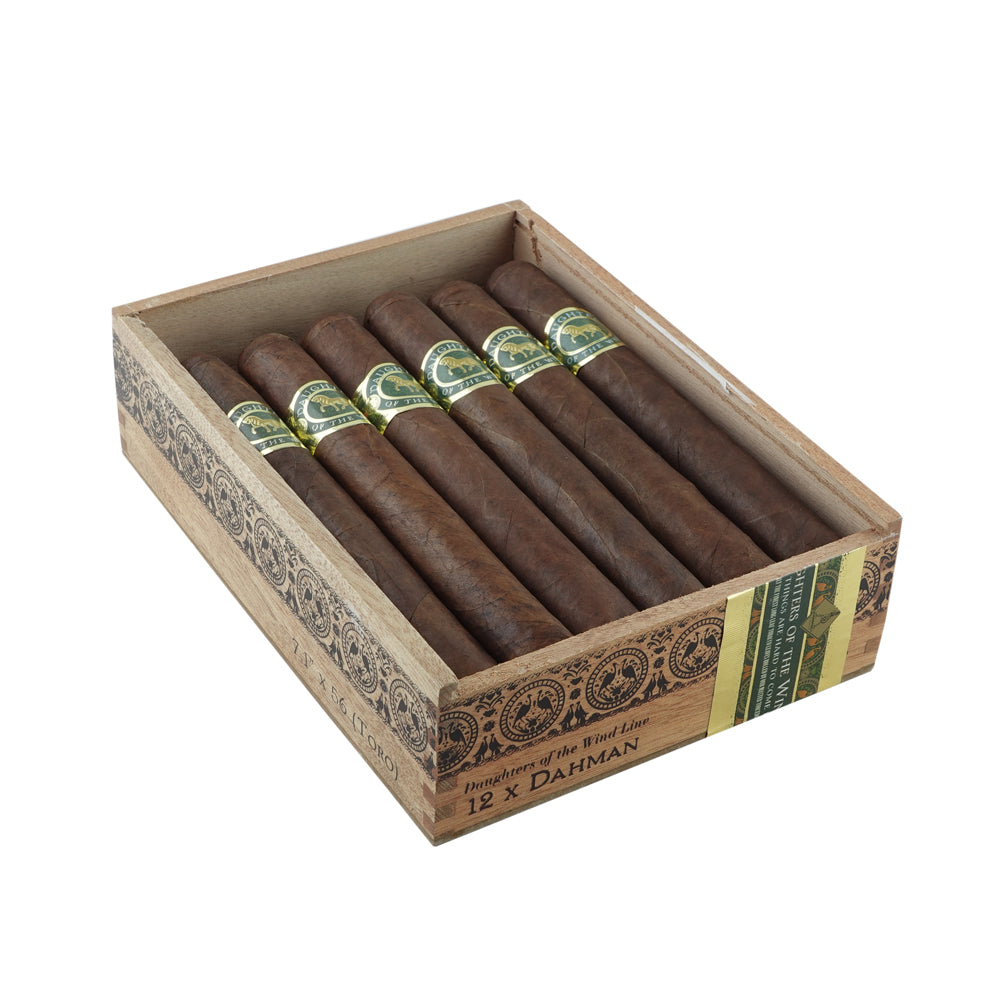 Presented in an elegant plain wood slide-top box of 12 cigars, each cigar is individually cellophane-wrapped to preserve freshness and quality. The Daughters of the Wind Dahman is a luxurious choice for those who appreciate refined craftsmanship and distinctive flavor.