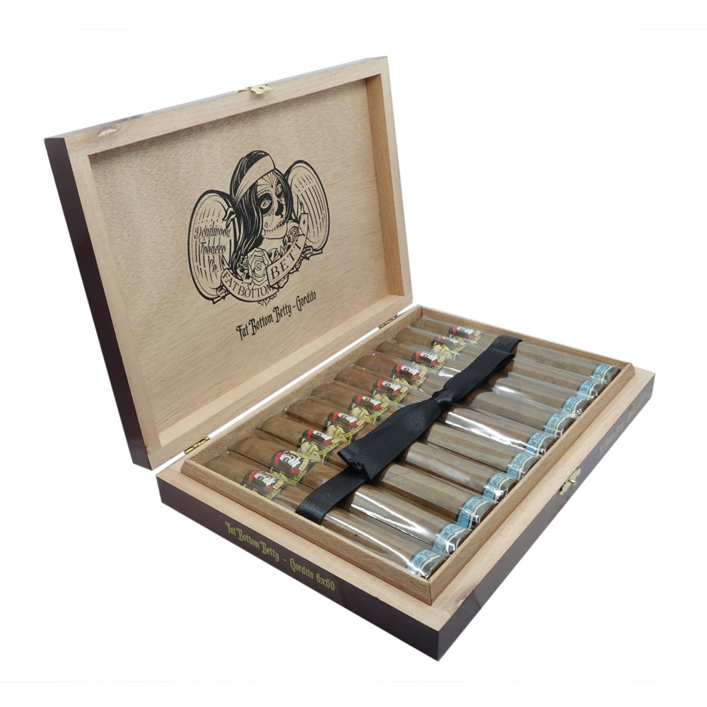 Presented in boxes of 10 cigars, the Fat Bottom Betty Gordito features Deadwood’s signature artwork and bold character. It is a full-flavored, fun-loving cigar that perfectly suits those who enjoy sweet, rich, and deeply satisfying smokes.