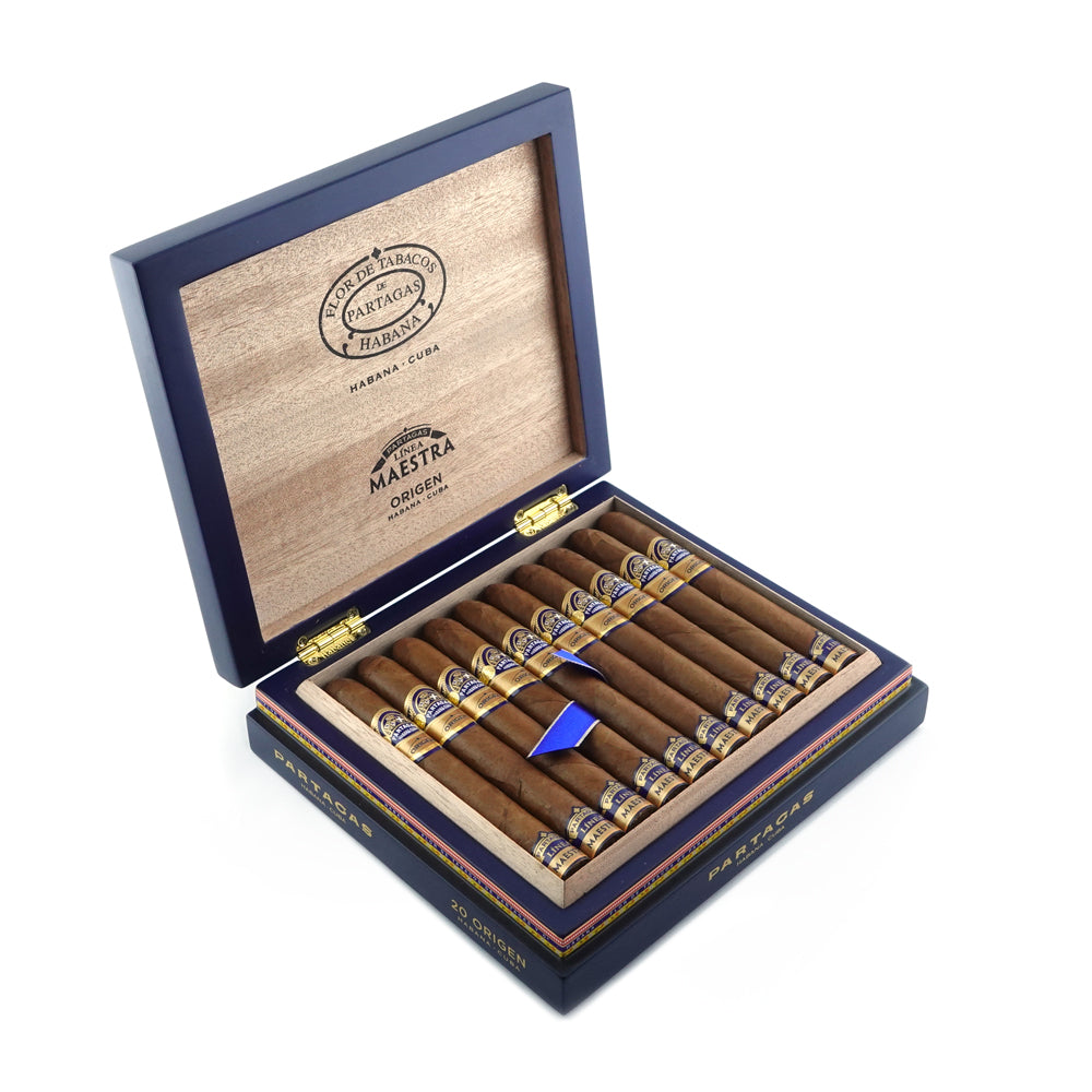 This vitola delivers a smooth yet complex smoking experience. The Origen opens with refined notes of earth, spice, and a subtle sweetness, and evolves into richer layers of wood, coffee, and tobacco oils. The slender 46 ring gauge offers a focused draw, while the generous length allows the flavors to develop gradually. The use of single‑origin San Luis tobacco provides a unique aromatic complexity that remains unmistakably Partagás.
