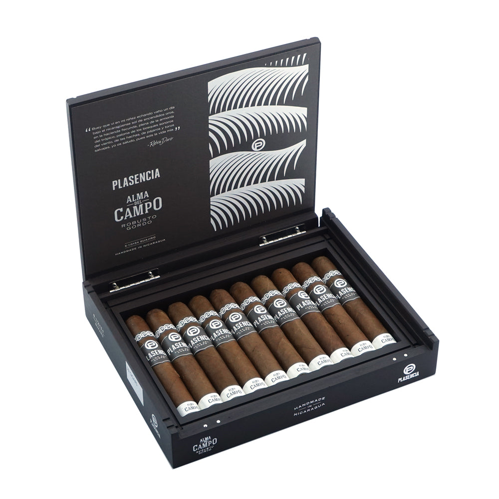 Presented in refined boxes of 10 cigars, each Plasencia Alma del Campo Guajiro features a clean white-and-gold band and an elegant aesthetic that reflects the cigar’s balanced character. A premium choice for those seeking sophistication in every draw.