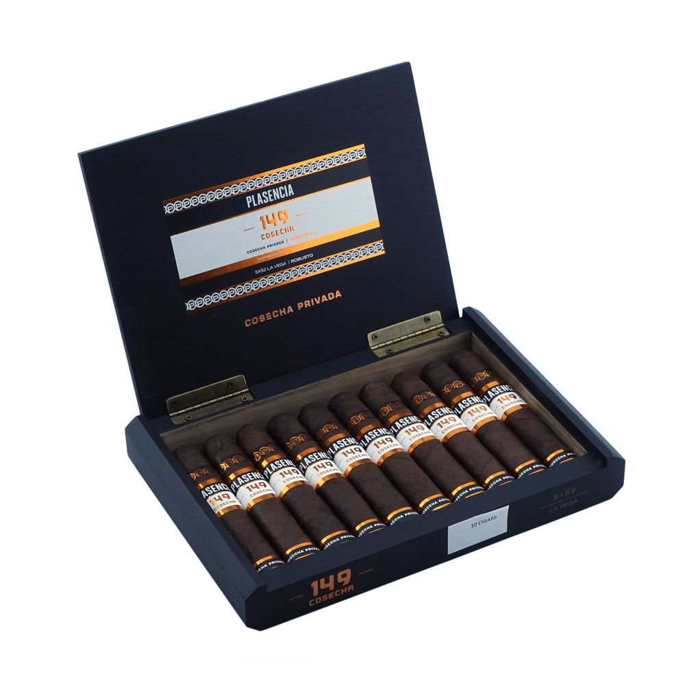 Presented in elegant boxes of 10 cigars, each Plasencia Cosecha 149 La Vega is meticulously hand-rolled with a rich, oily Maduro wrapper and accented with distinctive black, white, and copper banding. The aesthetic reflects the refined heritage and craftsmanship of the Plasencia legacy.