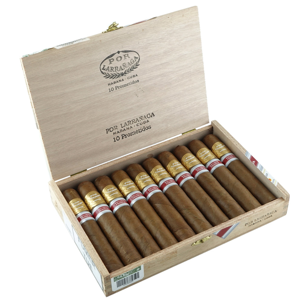 The Prometidos delivers an elegant profile marked by honeyed sweetness, toasted nuts, cedar, and creamy cocoa, balanced with light floral undertones. Its Duke vitola allows the flavors to develop gradually, offering richness and complexity while retaining the approachable medium-bodied character that Por Larrañaga is known for.