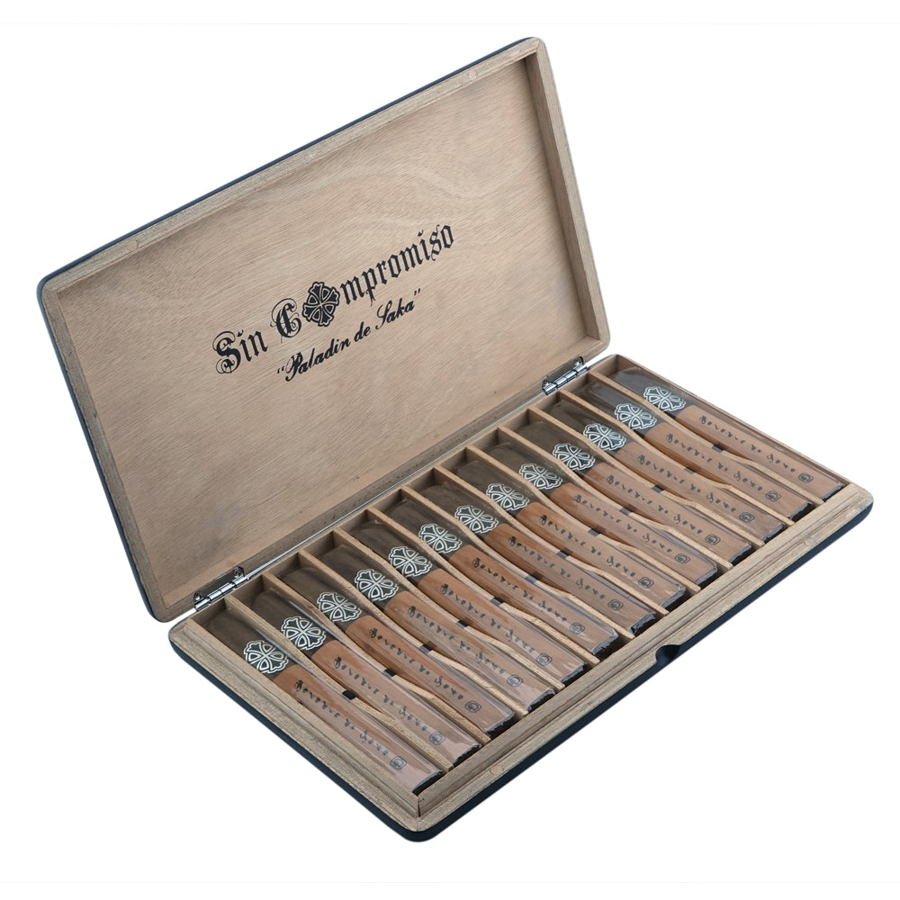 Each cigar is gently firm pressed, sleeved in Spanish cedar, and presented in beautifully crafted 13-count matte-lacquered Luxe FBN boxes. Available only through select purveyors in very limited quantities, the Paladín de Saka is a connoisseur’s treasure.