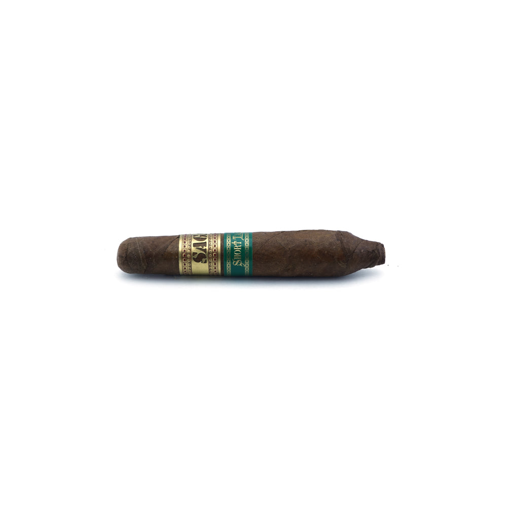The smoke ends with lingering chocolate and spice tones, maintaining balance to the very nub. Construction is very good with a firm draw, clean burn, consistent smoke output and solid ash. The figurado / perfecto shape, though small, delivers strong flavor impact. The cigar comes packed in a book‑style box of ten, with the Short Tales thematic presentation emphasizing Tomo IV’s story of labor, craftsmanship, and quality.